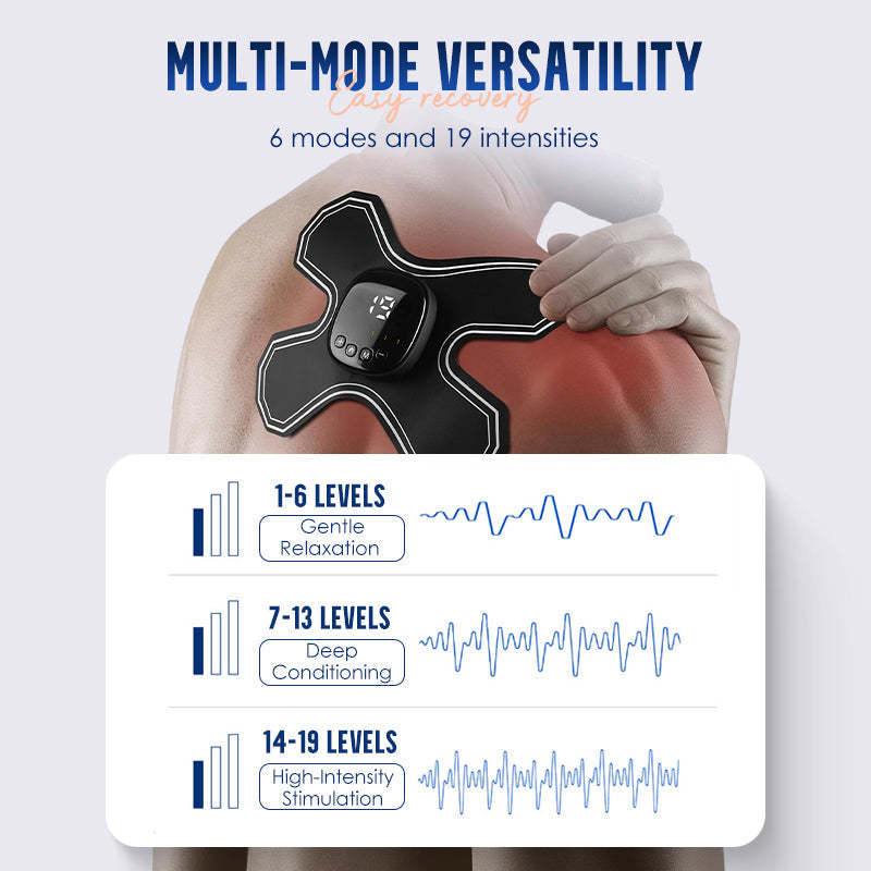 MODES DE MASSAGE POLYVALENTS - Doté de 6 modes de massage différents et de 19 niveaux d'intensité réglables, cet appareil vous permet de sélectionner la stimulation idéale, du tapotement au pétrissage, et ainsi de bénéficier d'une thérapie ciblée pour différents groupes musculaires et besoins de récupération.