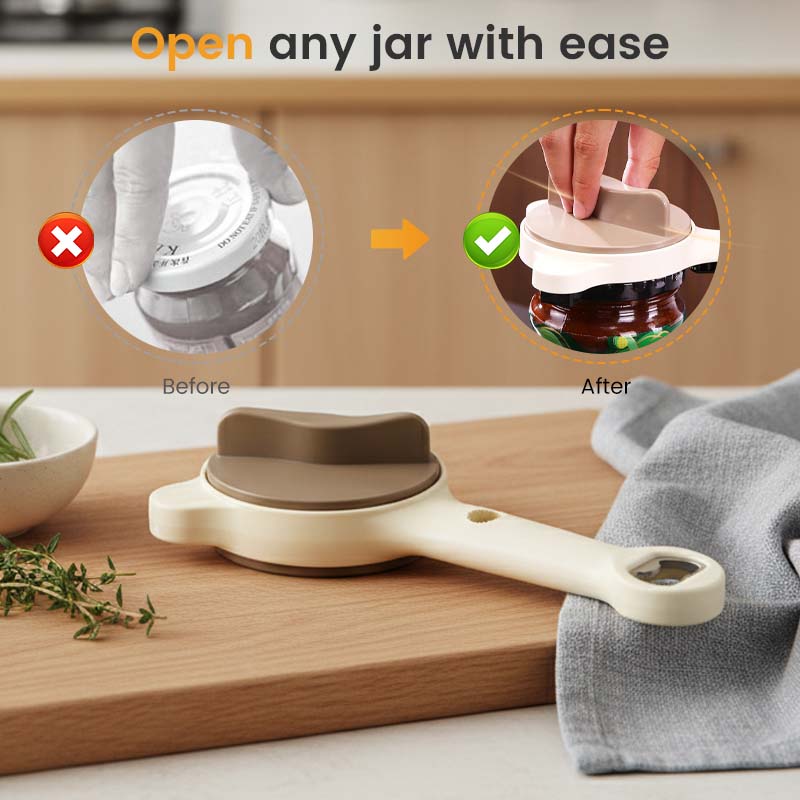 VERSTELLBARER GLASÖFFNER: Greift und öffnet mühelos eine Vielzahl von Glasdeckeln, von kleinen Gewürzgläsern bis hin zu großen Gurkengläsern, und erspart Ihnen das mühsame Öffnen von hartnäckigen, fest verschlossenen Behältern in Ihrer Küche.