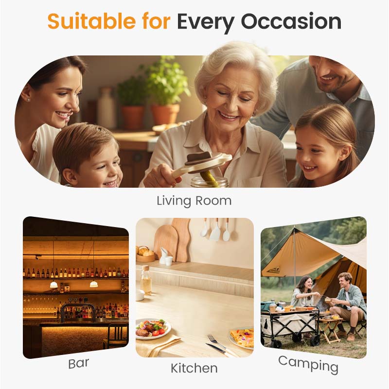 EINFACHE BEDIENUNG: Dank des einfachen Designs und des unkomplizierten Mechanismus kann jeder das Gerät mühelos bedienen. Öffnen Sie jedes Glas in drei einfachen Schritten: Passen Sie es an den Deckel an, klemmen Sie ihn fest und drehen Sie den Griff.
