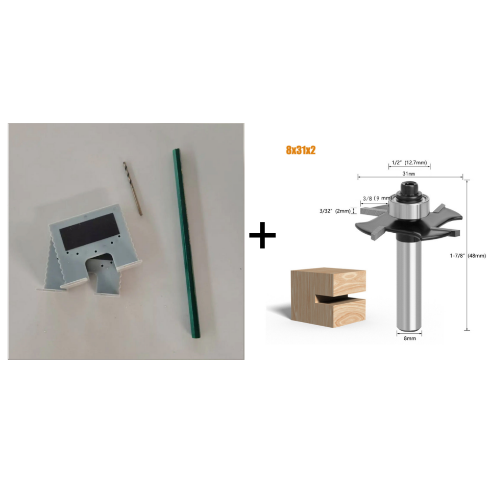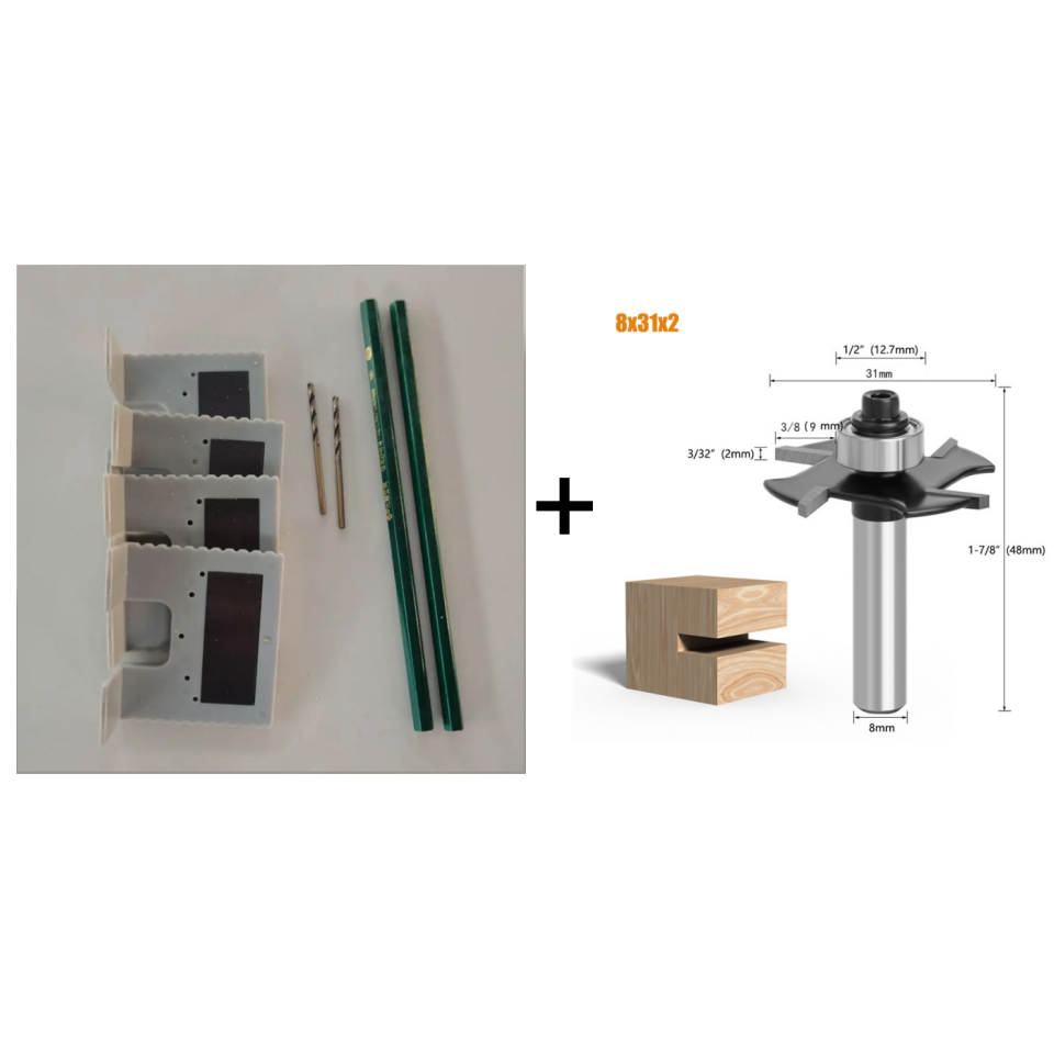 Set B: 2 x Scharnierbohrlehren + 1 x 2,5-mm-Bohrer + 1 x Bleistift