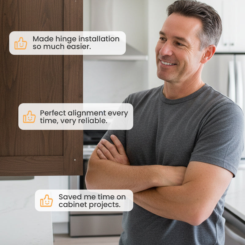 MÜHELOSE MONTAGE - Dieses Werkzeug vereinfacht den gesamten Prozess der Scharnierinstallation. Einfach die Schablone anlegen, markieren oder bohren, und fertig! Es reduziert die Installationszeit und den Aufwand erheblich und ist somit ideal für Heimwerker und Profis gleichermaßen.
