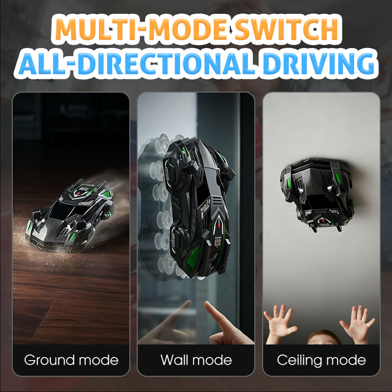 DUAL-MODUS-FUNKTION: Wechseln Sie mühelos mit einer einfachen Geste vom Boden- in den Wandmodus. Diese Vielseitigkeit bietet zwei Spielzeuge in einem: klassisches Bodenrennen und atemberaubende, schwerkrafttrotzende Stunts – für doppelte Aufregung und Spielwert.
