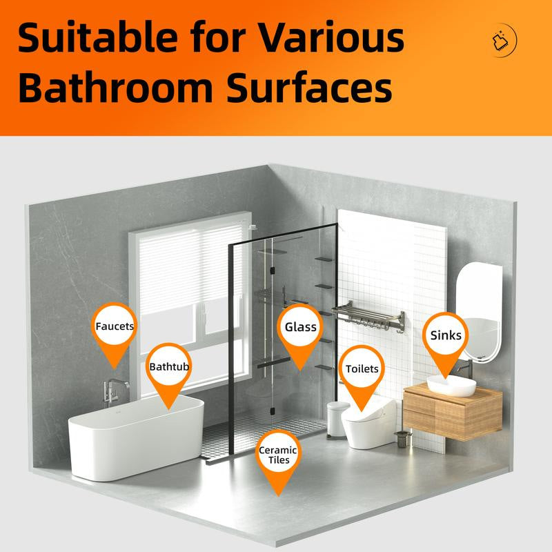 Schonend zu Keramikoberflächen - Dieser Badezimmerreiniger in Sprühform hat eine milde Formel, die Badezimmeroberflächen einen strahlenden Glanz verleiht, ohne die Fliesen zu beschädigen.