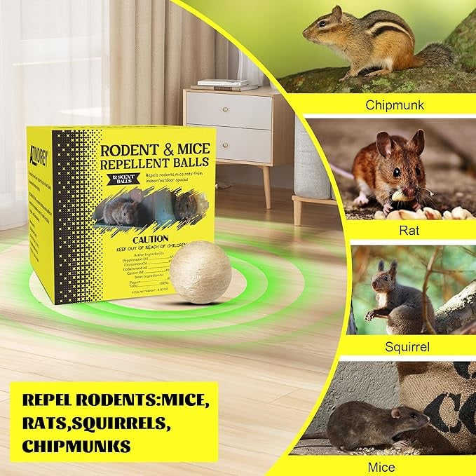 Atindirey Mäuse- und Rattenabwehrbälle – Schutz für drinnen, draußen und Automotoren. Lang anhaltende Formel mit Pfefferminzöl, sicher für Haustiere und Kinder, wirksamer Mäuseschutz für 30–60 Tage.