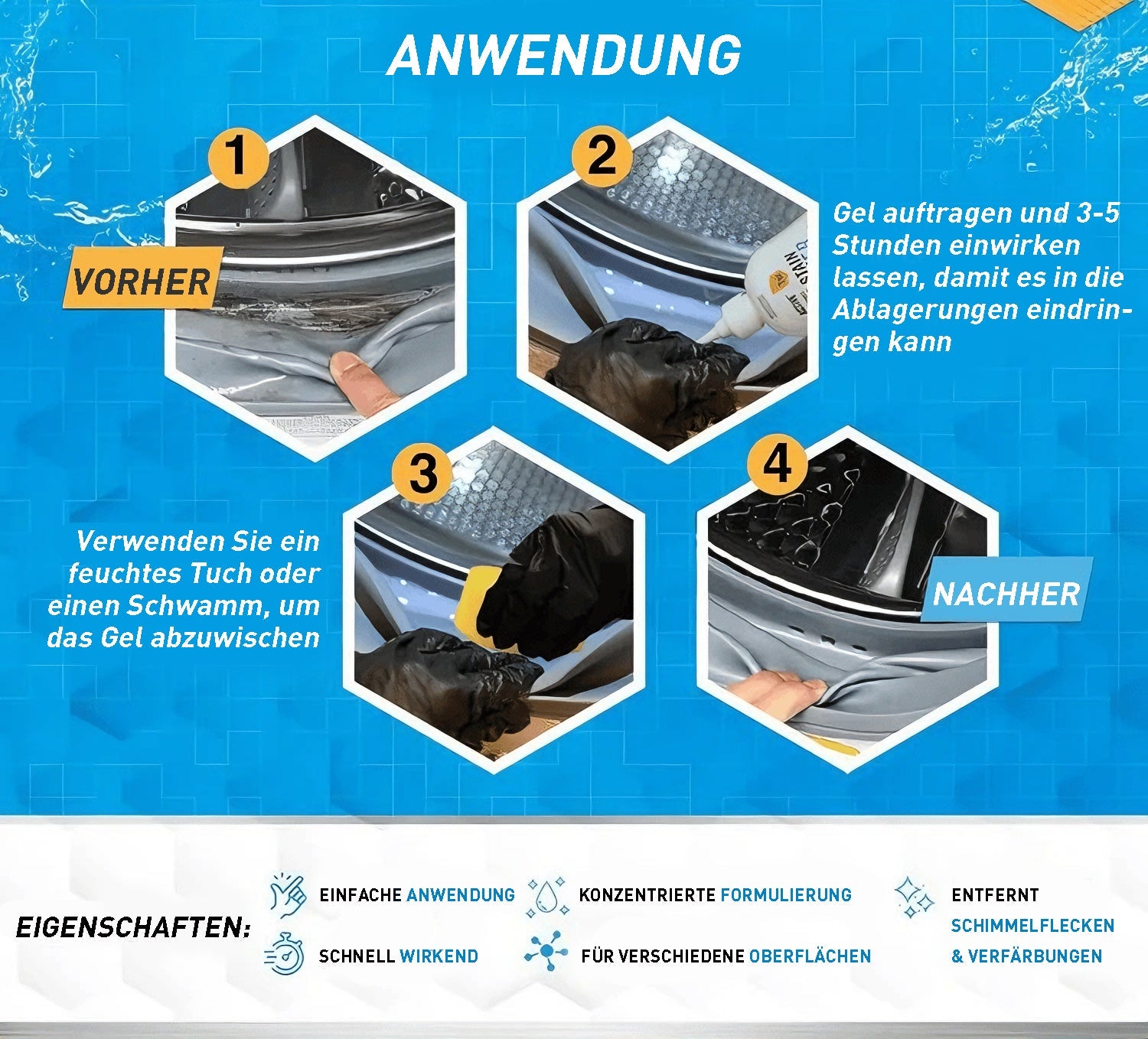 Dieses Schimmelentferner-Gel ist der absolute Wahnsinn! Einfach auftragen, einwirken lassen und schwupps – weg mit dem Schimmel! Echt revolutionär.