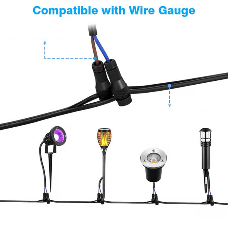 BREITE KOMPATIBILITÄT: Kompatibel mit verschiedenen Niederspannungskabeln und einer Reihe von Landschafts- und Gartenleuchten, erfüllt die Bedürfnisse unterschiedlicher Benutzer.