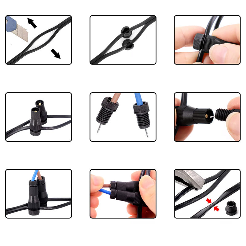 Lieferumfang: 10/20 × wasserfester Niederspannungs-Kabelverbinder für Gartenbeleuchtung